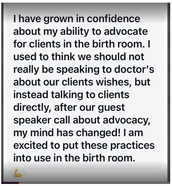 Having real life examples of how to advocate or what to do was awesome to have as a part of my training. I absolutely loved this training and if anyone were inquiring about becoming a doula, I would highly recommend this Mastermind!”